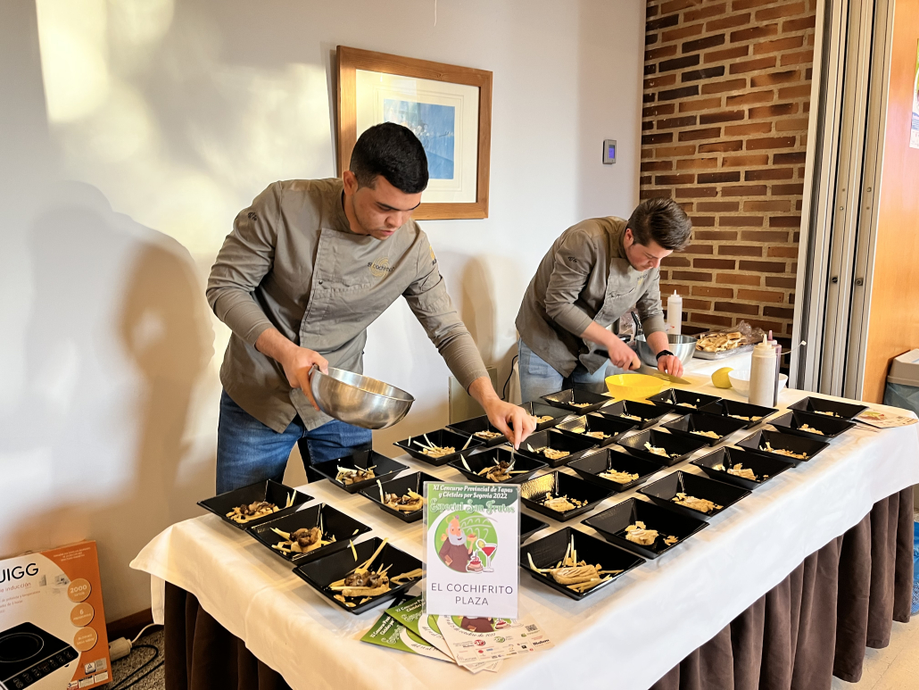 El Restaurante “Cochifrito Plaza”, se encuentra en pleno corazón de Segovia, exactamente en la Plaza Mayor. El objetivo del restaurante es mirar por nuestra tierra, por eso utilizamos en toda nuestra carta productos de la zona. Hoy os presentamos la tapa ganadora KM 0 ecológica de la ruta de Tapas de San Frutos 2022. Fue creada por nuestro Chef Jose María Simon. La Tapa “Nido de Otoño” consta de un guiso de setitas sobre tosta de pan, crema trufada, huevo de codorniz, chips de manzana y reducción de vino tinto. Todos estos ingredientes usados en la elaboración son productos de nuestra tierra.Tras el éxito de esta Tapa, Julián Conde, ganadero y propietario del restaurante El Cochifrito Plaza, ha apostado por ofrecer esta deliciosa tapa en la carta del restaurante. Para que esta pueda seguir siendo degustada por todos los clientes de una forma aún más elaborada en un ambiente tradicional a la vez que moderno, como puede ser en las acogedoras y exclusivas bodegas, creando un ambiente tranquilo en el que los clientes puedan disfrutar de un plato gastronómico elaborado con productos de nuestros pueblos y de una gran calidad.